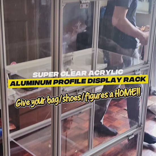 Originally custom-made for a client to showcase luxury handbags and limited-edition sneakers, this versatile display rack is also ideal for designer collectibles, blind box figurines, and more. The combination of durable aluminum profiles and crystal-clear acrylic ensures a sleek, high-end look while offering sturdy, long-lasting support.