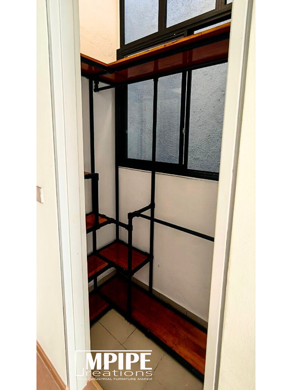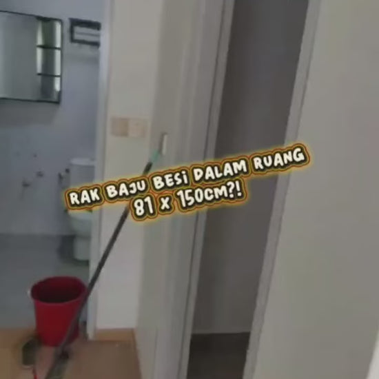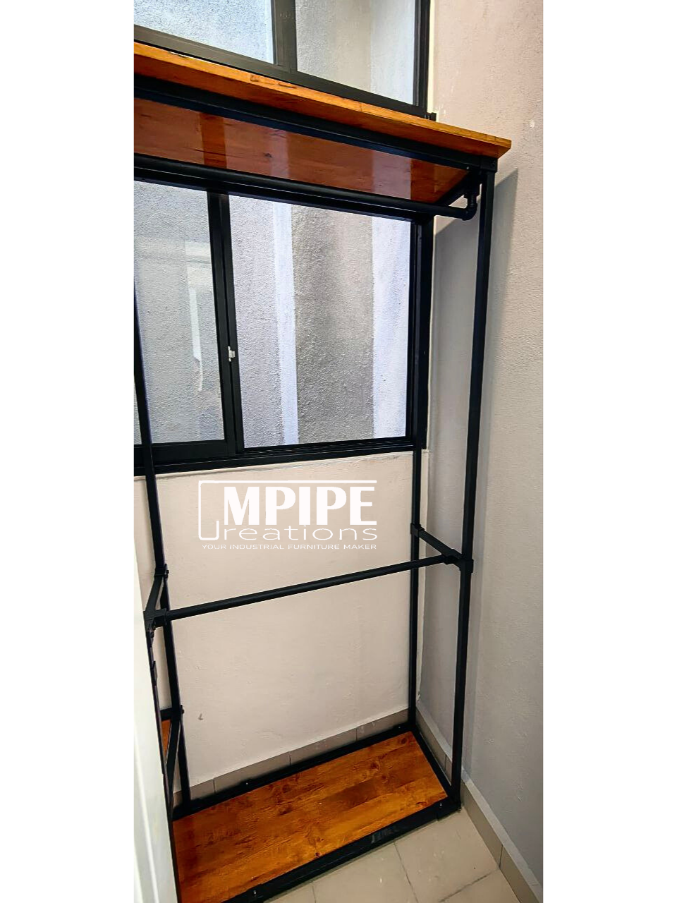 This custom project was installed at Nadayu 801 Subang, where the available area was only 81cm x 150cm — an extremely tight space. Yet, we managed to maximize every inch by fitting in a practical L-shaped open wardrobe, combining sturdy square hollow steel with elegant rubberwood shelving.