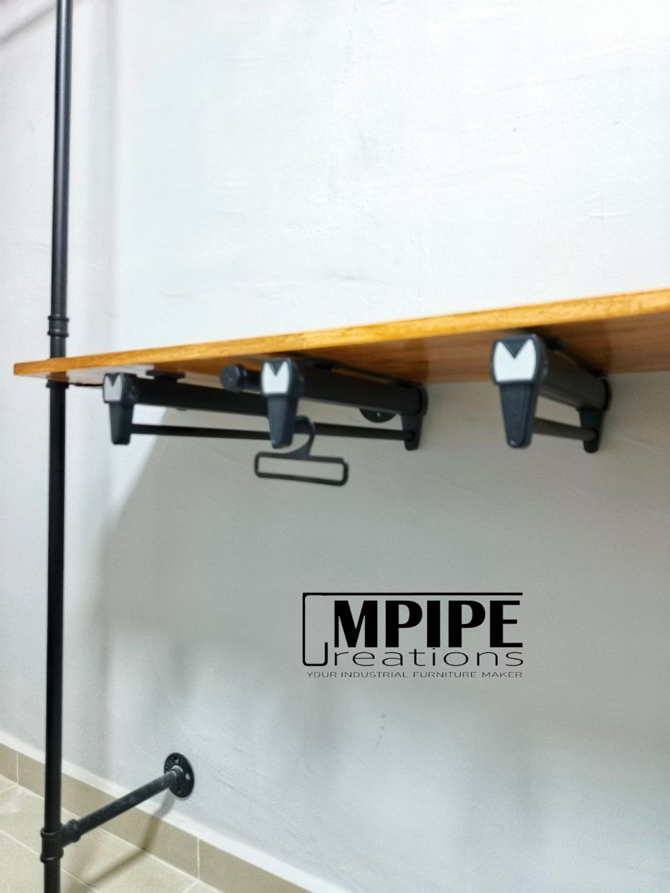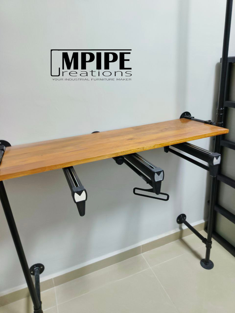 Installed neatly beneath the wooden shelf, this smooth sliding rail allows the entire row of hanging pants or tudung to be pulled out effortlessly. No digging, no overcrowding — just easy access with maximum space efficiency.
