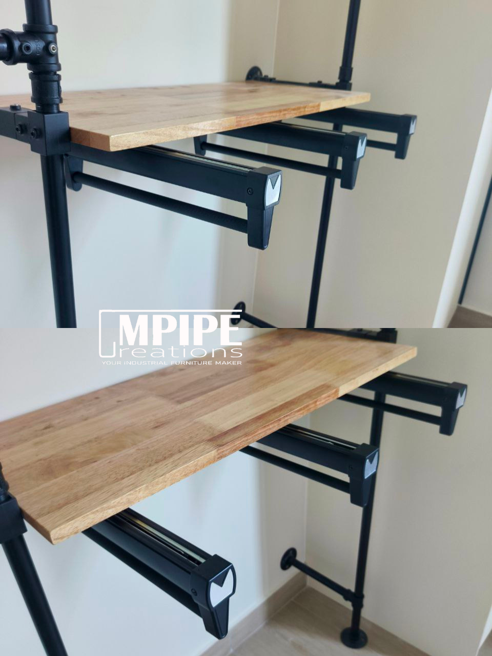 Installed neatly beneath the wooden shelf, this smooth sliding rail allows the entire row of hanging pants or tudung to be pulled out effortlessly. No digging, no overcrowding — just easy access with maximum space efficiency.
