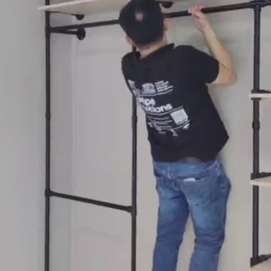 Products: Custom Wall Mounted Clothing Rack with Melamine Shelves and Rubberwood Shelves