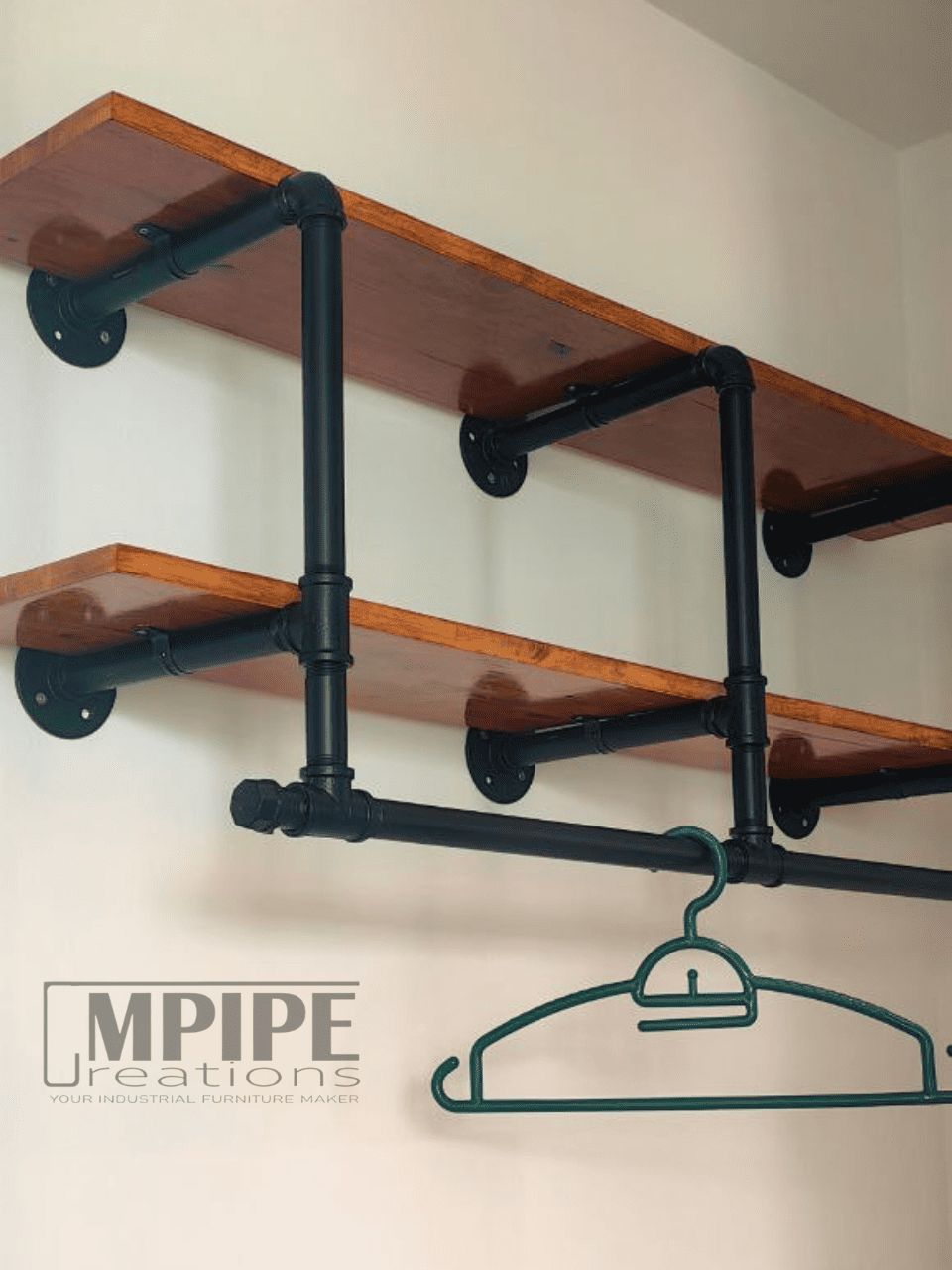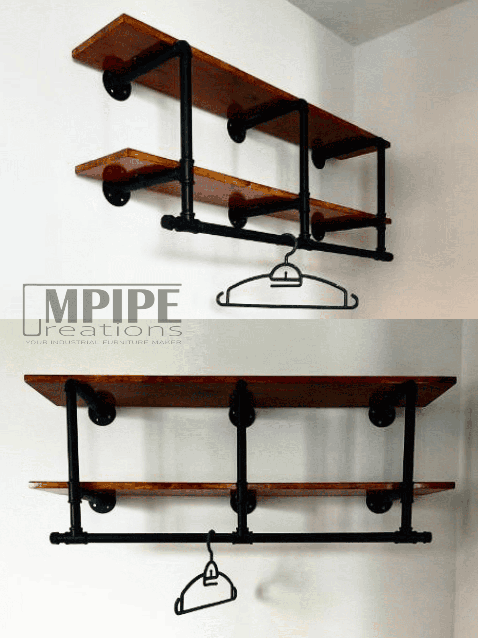 Products: Custom 2 Layer Rubberwood & Pipe Wall Shelves / Coat Hanger