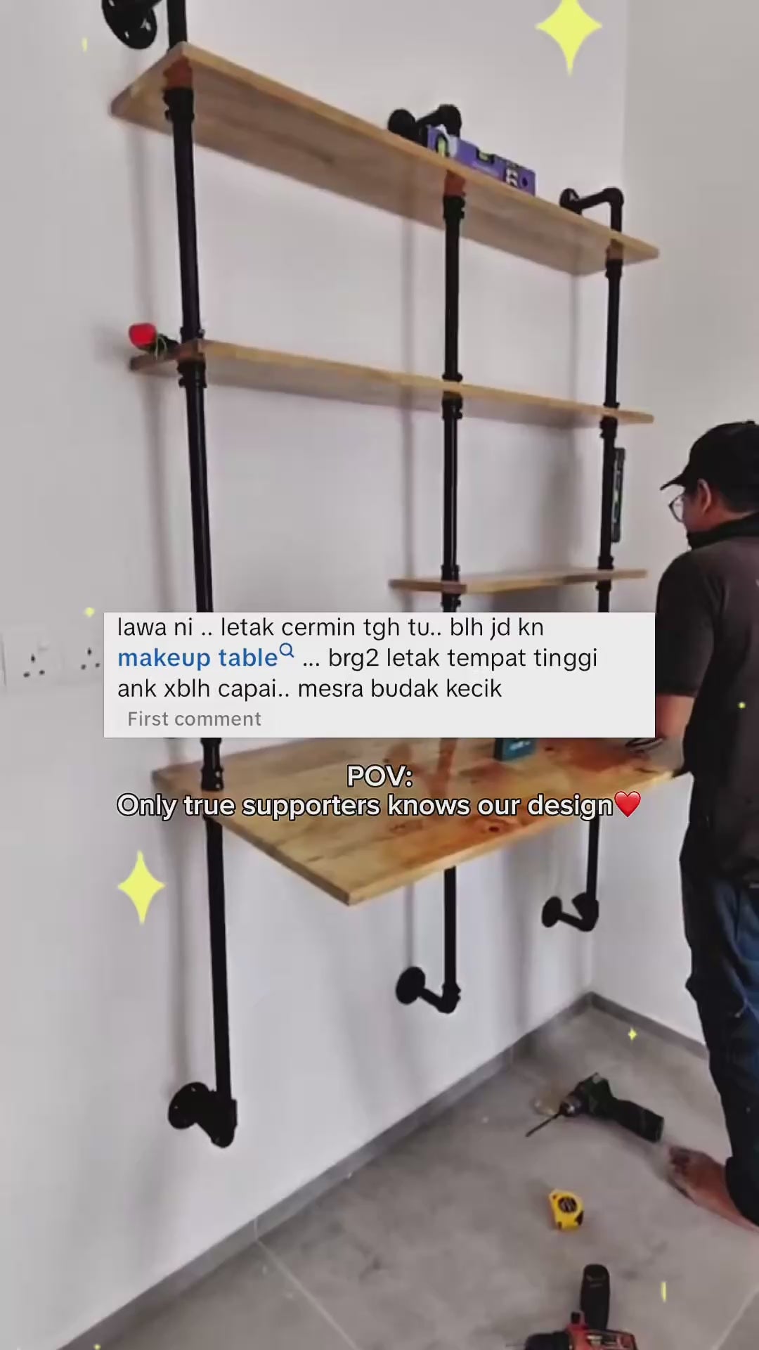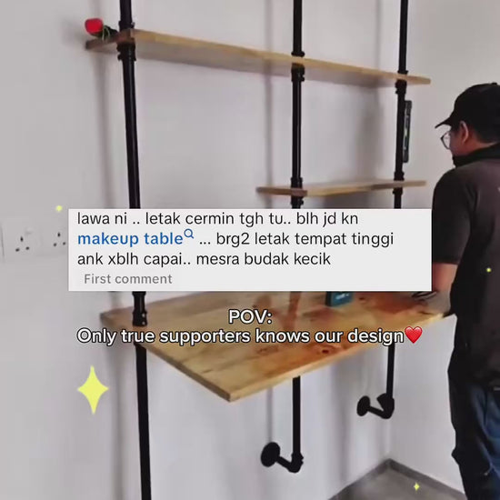 This 4-Layer Wall Shelves set is designed for both functionality and aesthetics, crafted from durable GI pipe and solid rubberwood.