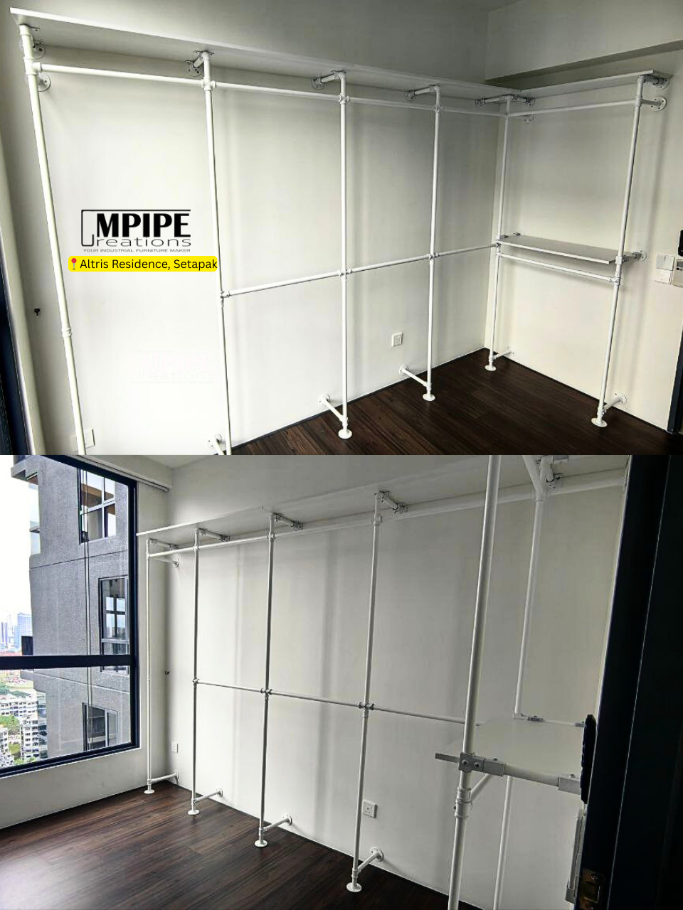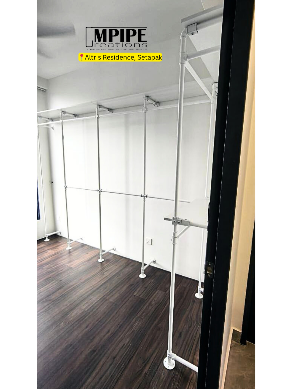 This custom open wardrobe is finished in a full white powder coat — creating a look that’s fresh, minimalist, and effortlessly elegant.
