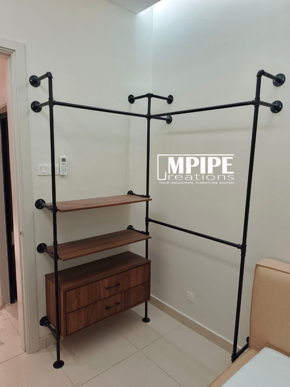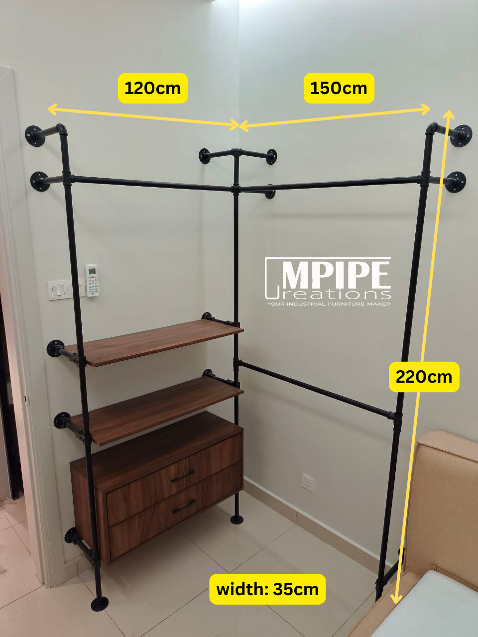 This corner-style wall-mounted open wardrobe is built to maximize every inch of your space — even the tight angles.