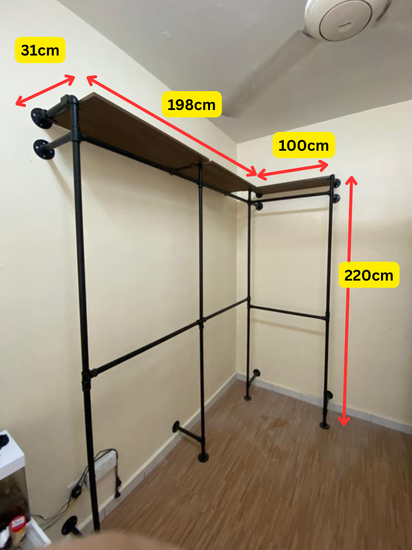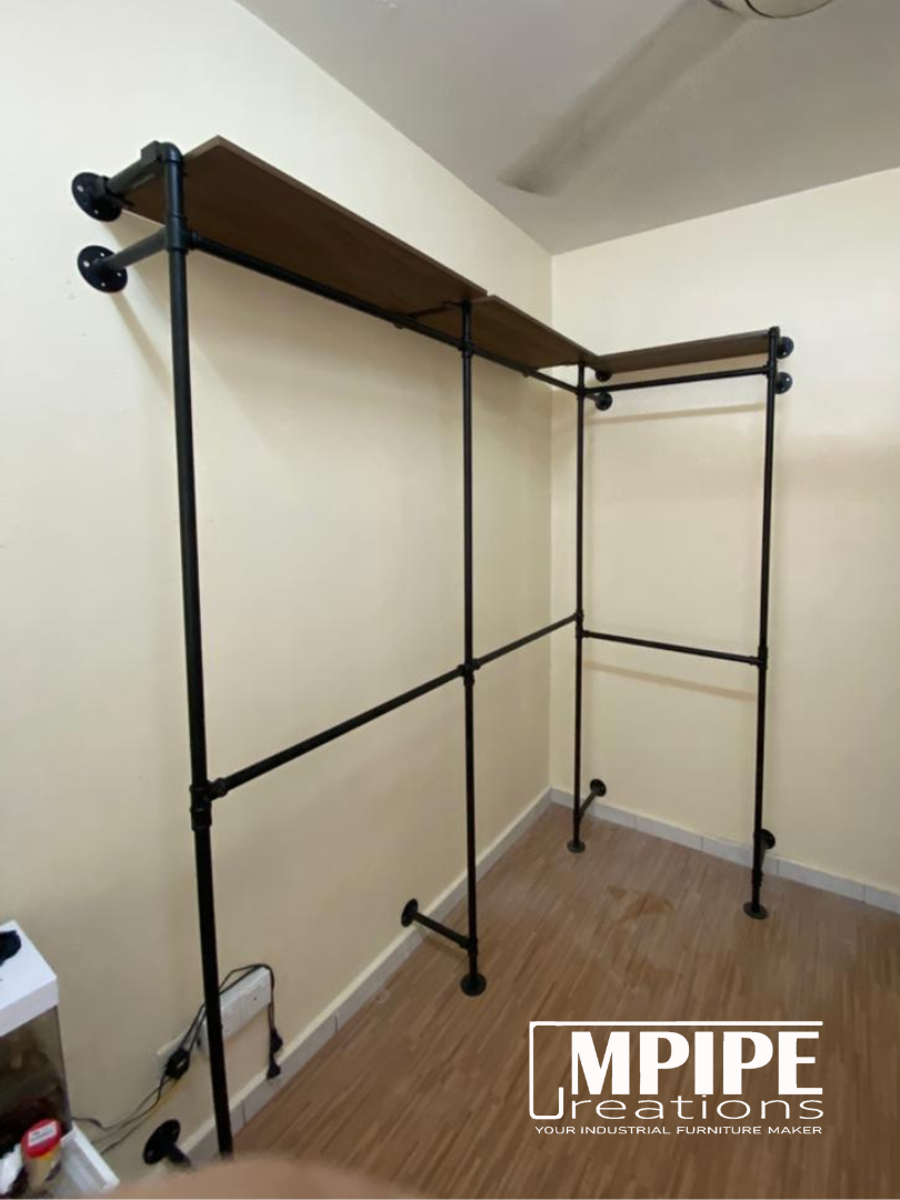 Don’t underestimate the corner — with our Custom Corner Clothing Rack, that “wasted” space becomes the most useful spot in your room. Designed for modern Malaysian homes, small boutiques, or even Airbnb units, this rack fits snugly into 90-degree angles while still offering generous hanging space and a sleek industrial feel.