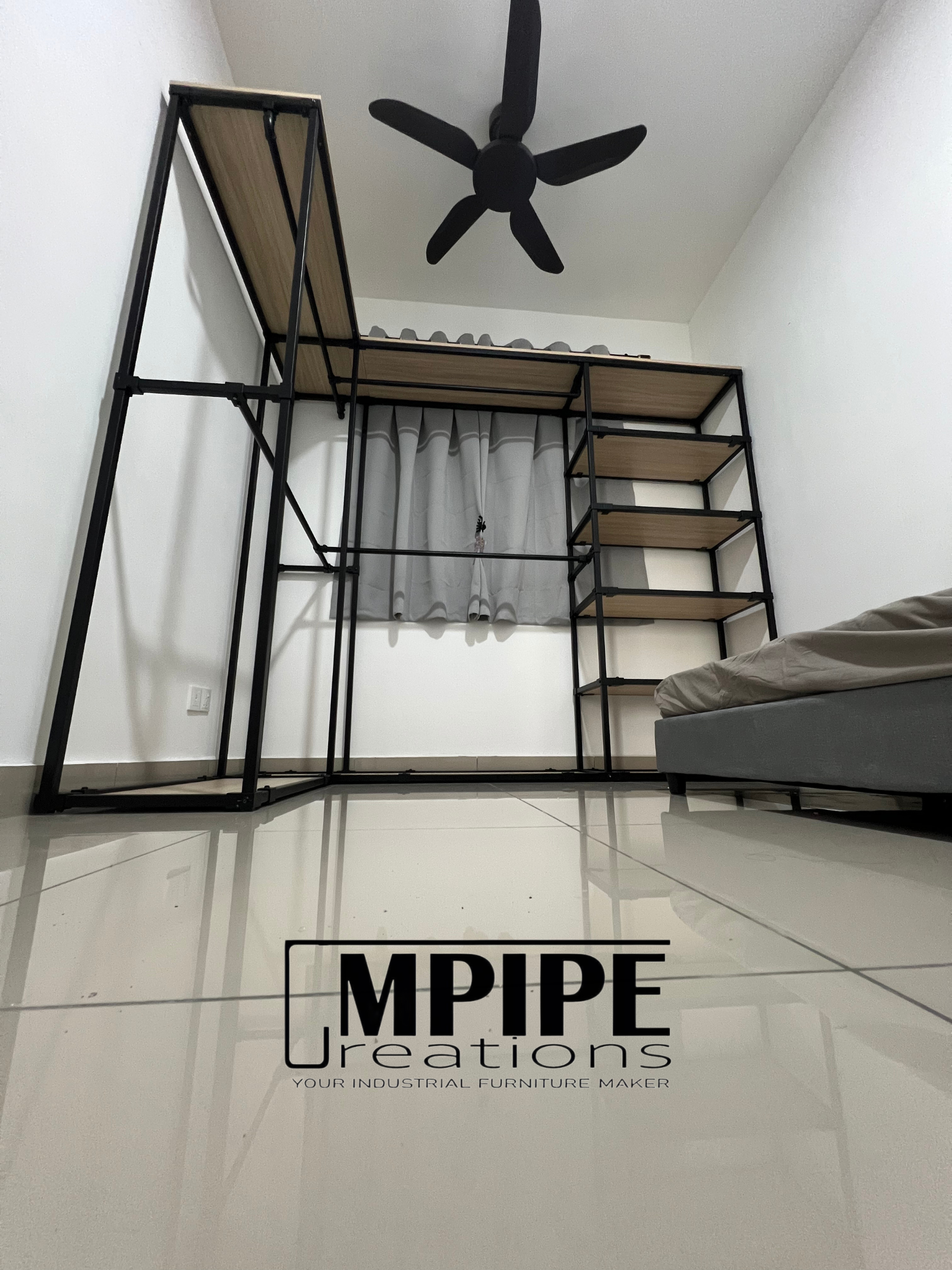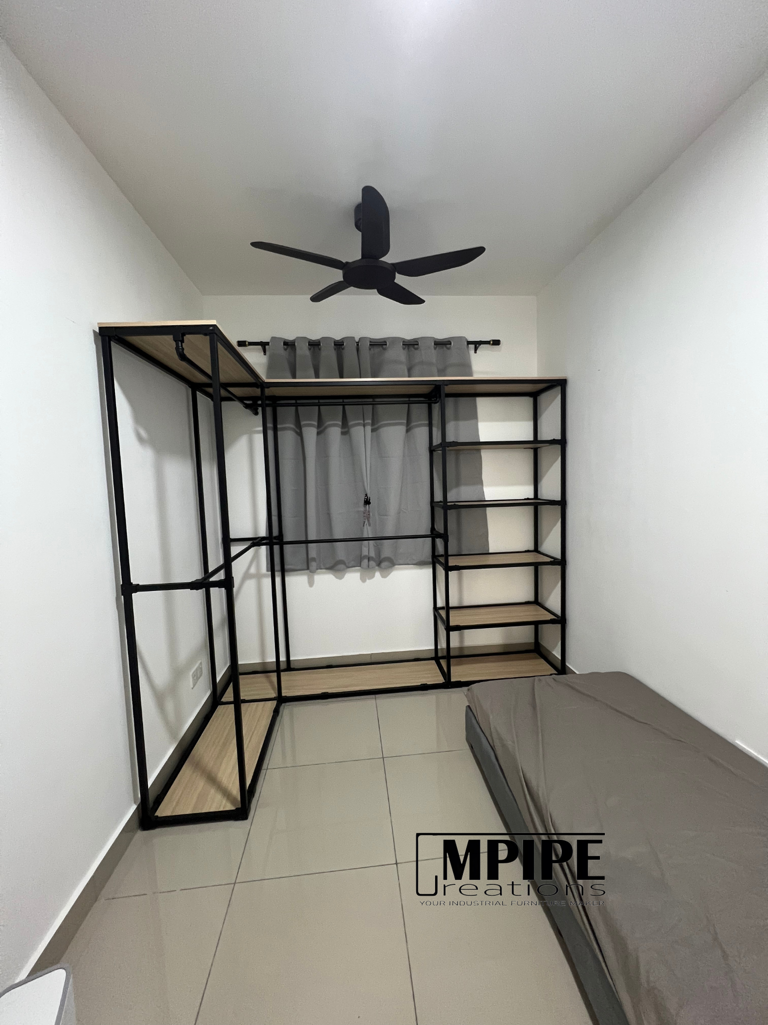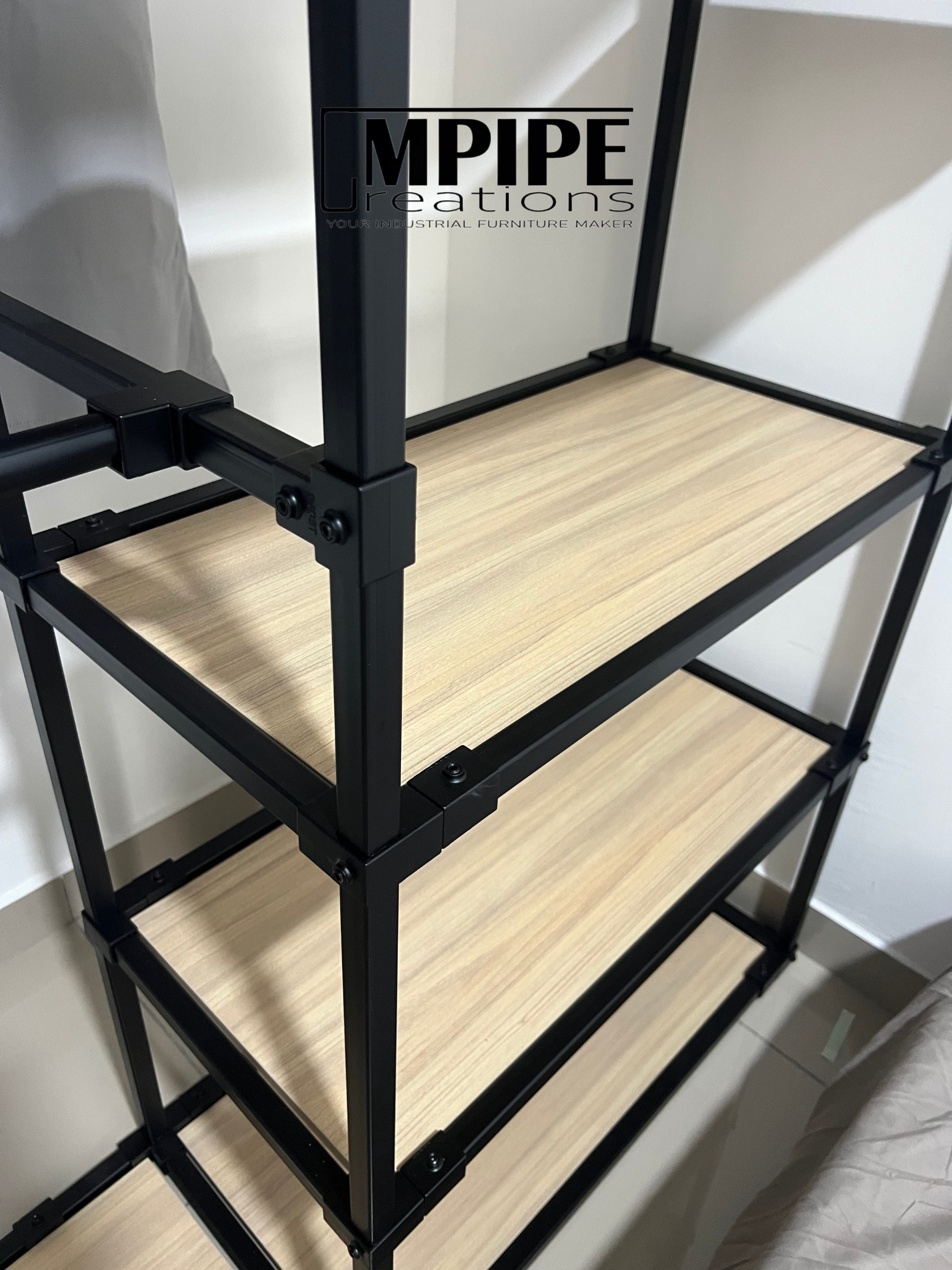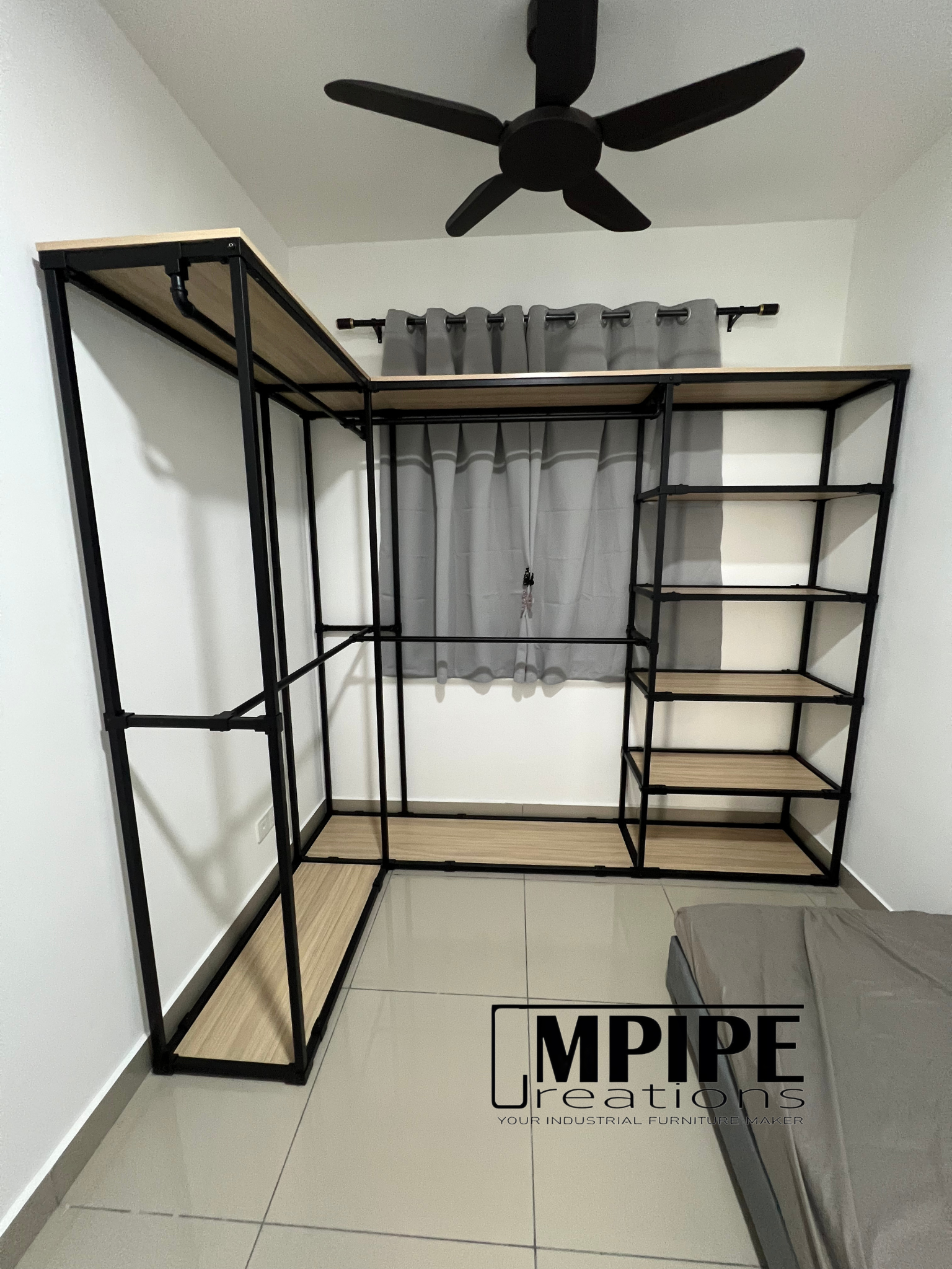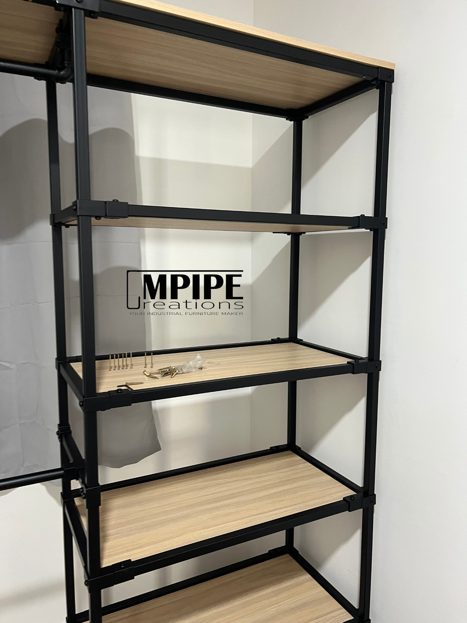 Simple, clean, and efficient — this L-shaped portable standing wardrobe is built using a durable square hollow metal frame paired with premium melamine shelving.