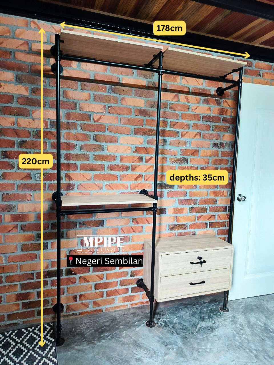 Sleek, space-saving, and stylish – KIT 1 drawer and KIT 2 drawer is the ultimate wall-mounted clothing rack for those who want both functionality and aesthetics. Featuring two spacious drawers in a gorgeous natural wood melamine finish, this rack offers ample storage while maintaining a clean, modern look. A sturdy wood plank on top provides the perfect spot for storing luggage or decorative pieces, making it an excellent choice for compact bedrooms, SOHO units, or minimalist interiors.