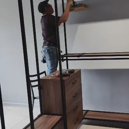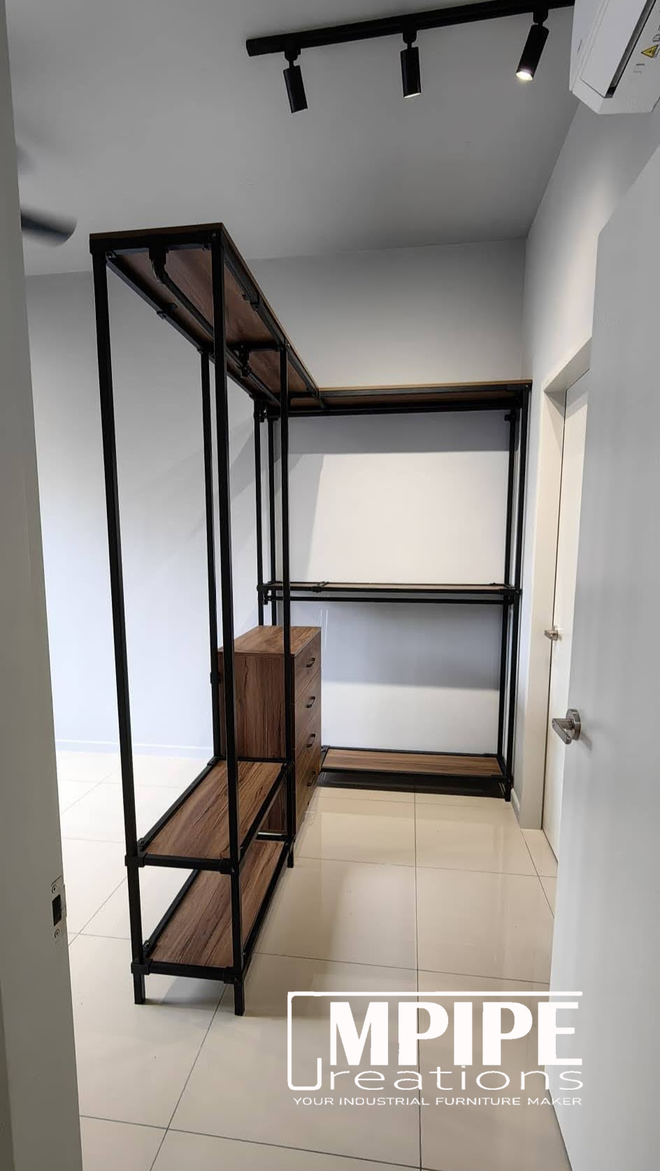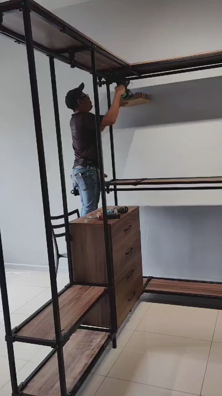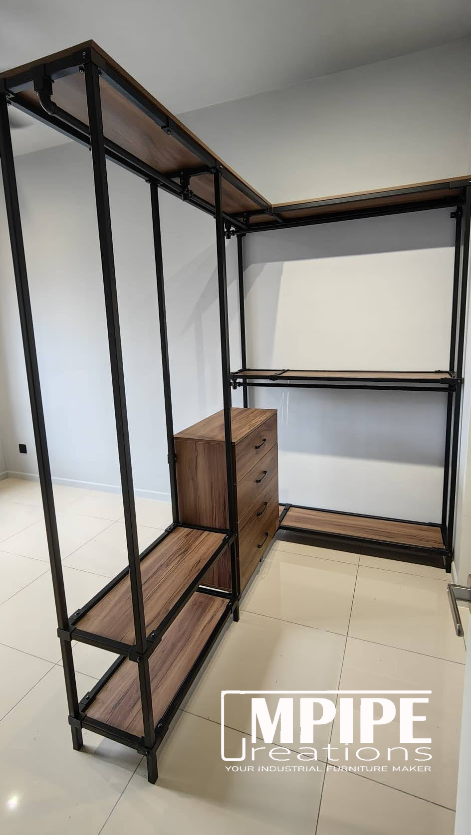 Designed for both practicality and aesthetics, our custom L-Shape Clothing Rack with Drawer Cabinet is a space-saving solution that seamlessly integrates storage and room separation. Unlike traditional clothing racks placed against a wall, this unique design stands independently, functioning as both a wardrobe and a room divider.