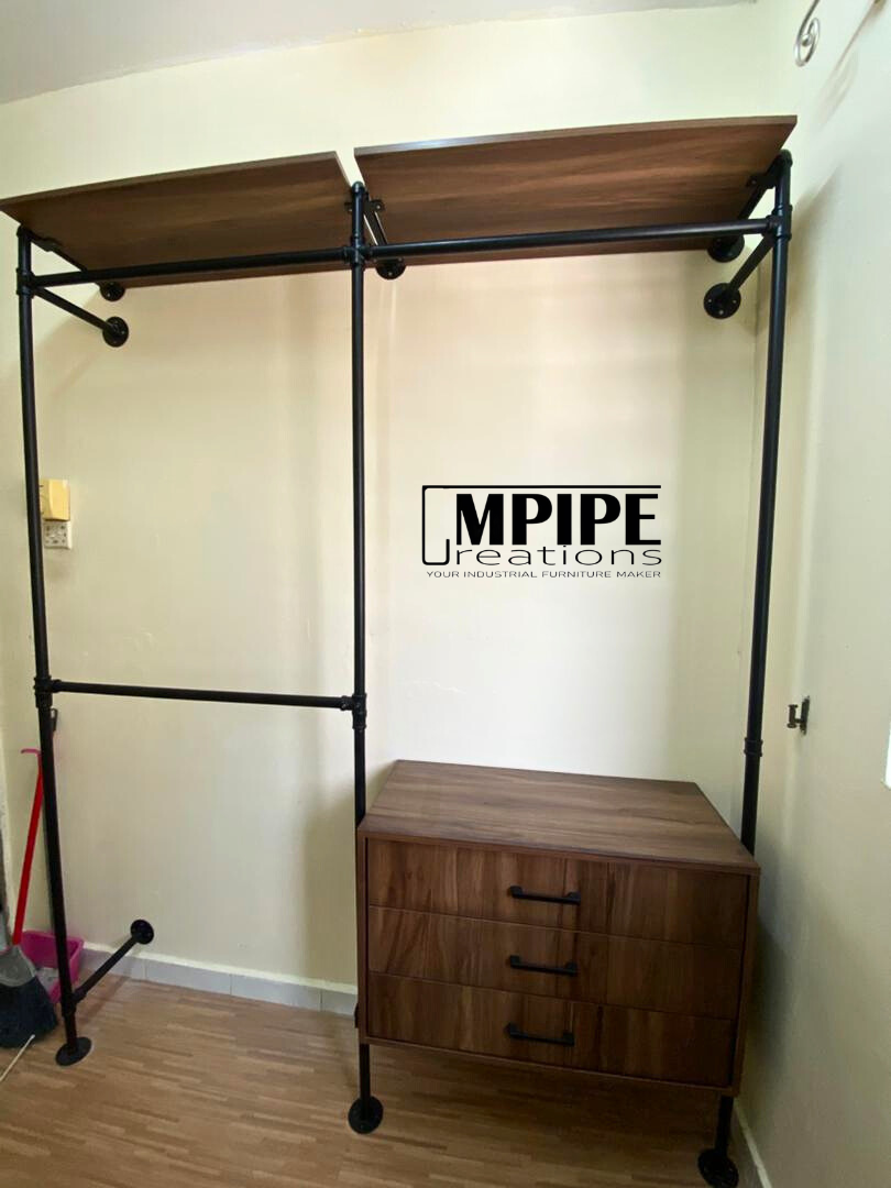Sleek, space-saving, and stylish – Kit 2 is the ultimate wall-mounted clothing rack for those who want both functionality and aesthetics. Featuring three spacious drawers in a gorgeous hazelnut wood melamine finish, this rack offers ample storage while maintaining a clean, modern look. A sturdy wood plank on top provides the perfect spot for storing luggage or decorative pieces, making it an excellent choice for compact bedrooms, SOHO units, or minimalist interiors.