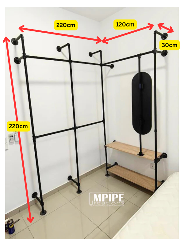 Products: Custom Corner Pipe Clothing Rack with 360 Rotating Mirror