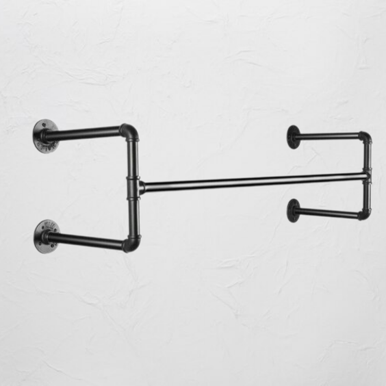 - Made from solid matte black steel pipes in a rustic industrial style.